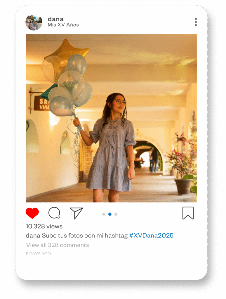 ¡Felices 15 años hija! Que hoy sea un día de sorpresa, diversión y felicidad para ti, que todos tus deseos y sueños se cumplan. De todo corazón muchas felicidades. ¡Te amo!